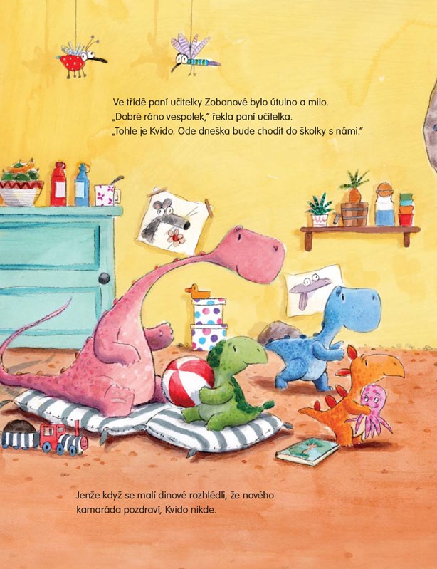 Kvida čeká jeho první den ve školce, paní učitelka a houf nových kamarádů. Trošku se stydí, a tak využije svou superschopnost a schová se. (Schovávání mu totiž opravdu jde!) Jestlipak Kvido nakonec s pomocí nového kamaráda a maličkého kouzla nalezne potřebnou trošku odvahy? Ve školce je to přece prima!