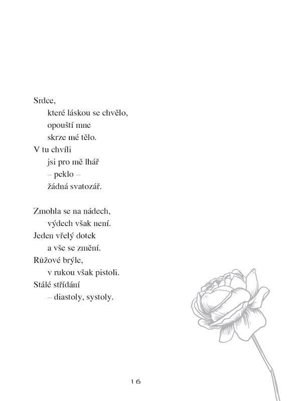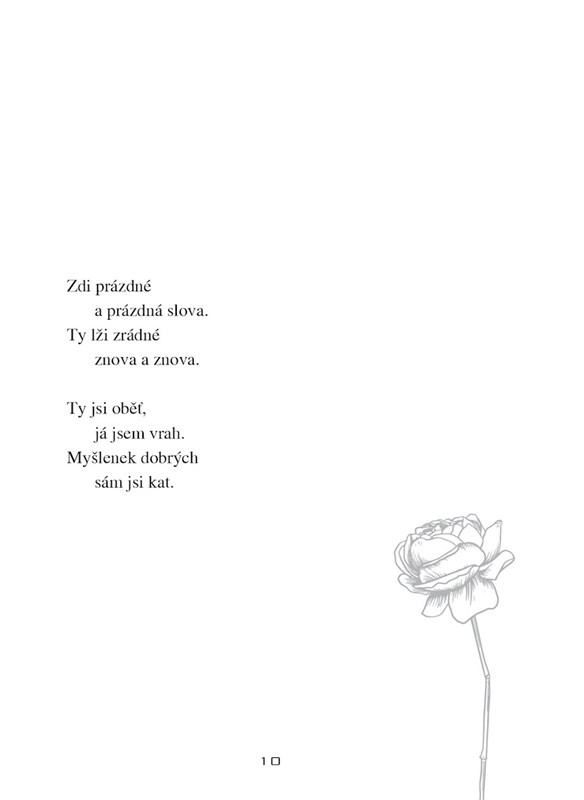 Básnická sbírka plná emocí o bezmoci, strachu a tlaku společnosti. Doplněna texty zachycujícími pocity v depresivních fázích a suicidních etapách na oddělení psychiatrie.