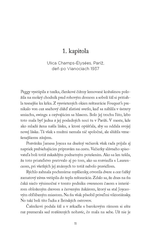 Paríž 1937. Rebelka Peggy Guggenheim si užíva život medzi jagavou umeleckou bohémou, jeden nablýskaný večierok strieda ďalší. Stretáva tu množstvo umelcov a prežíva vášnivé vzťahy so spisovateľom Samuelom Beckettom či výtvarníkmi Yvom Tanguym a Maxom Ernstom.