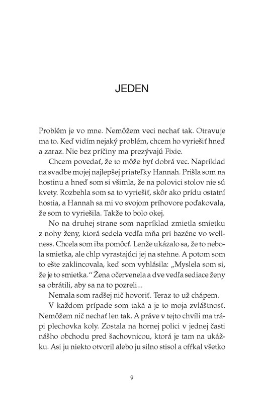 Fixie sa zmieta medzi minulosťou a lákavou budúcnosťou a séria malých láskavostí a dlhov môže od základu zmeniť jej život. Bude mať konečne odvahu pomôcť nielen iným, ale aj sebe? Nájde aj ona lásku, po ktorej túži?