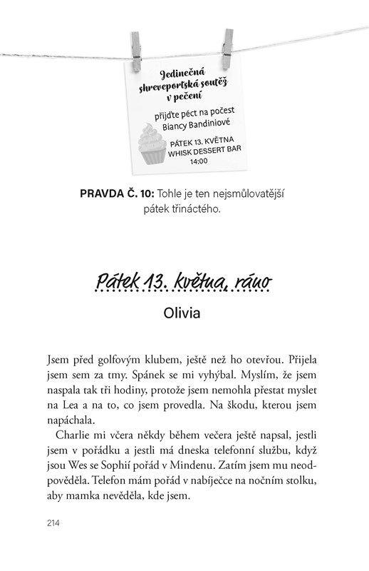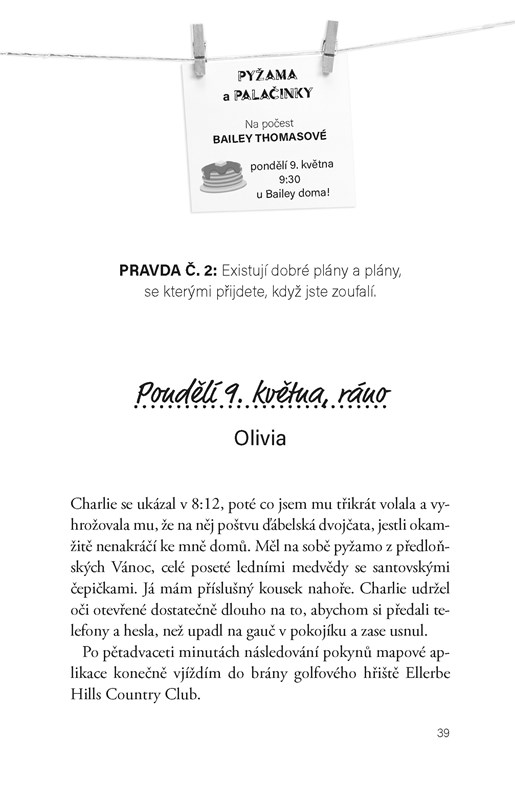 Olivie je premiantka, ale teď jí kvůli jednomu malému přešlapu hrozí, že nedokončí střední školu. Má týden, aby vše napravila – a zároveň musí celý průšvih utajit před svou rodinou. Dokáže Olivie skrýt, že musí dobrovolničit na golfovém hřišti, i když jí máma dala do mobilu sledovací aplikaci? Mohlo by to vyjít… pokud Charlie, Wes a Sophie přistoupí na její trhlý plán a s pomocí jejího telefonu budou předstírat, že jsou ona.