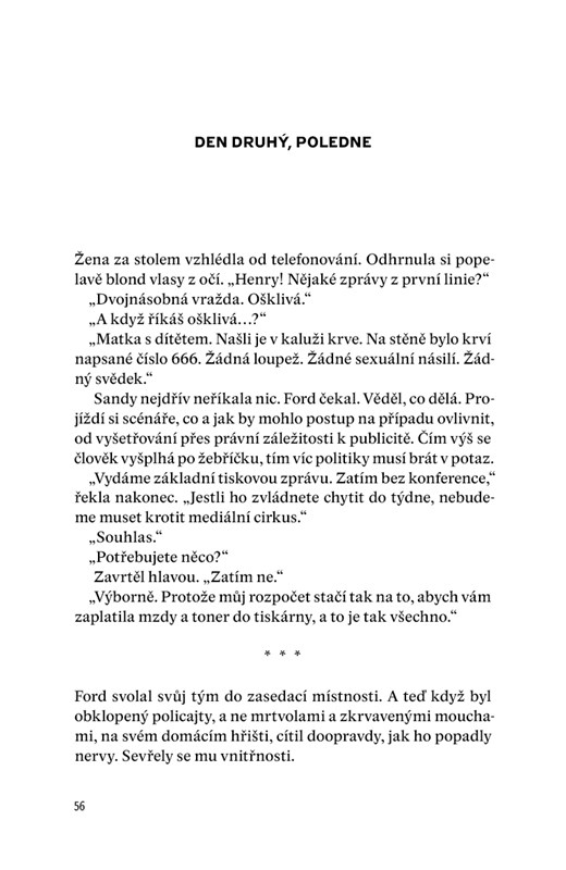 Čerstvě povýšený inspektor Henry Ford je povolán k vyšetřování dvojité vraždy. I přes nedostatek indicií tuší, že za vším stojí sériový vrah. Ford totiž z vlastní zkušenosti dobře ví, jak po sobě zločinci zahlazují stopy. Před lety přišel o manželku při horolezecké nehodě, kterou sám způsobil. Ponurou pravdu se snaží utajit před svým synem i novou partnerkou, s níž spolupracuje na případu. Dokáže celou situaci ustát dost dlouho na to, aby zabijáka zastavil?