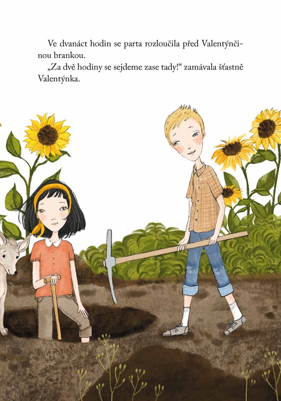 Valentýnčin strýček sbírá trilobity, a tak podnikne s dětmi i se psem Hugem výpravu do skal. A Valentýnka brzy dostane nápad: s Jonášem, Péťou a Zuzkou půjdou hledat poklad. Kopání u slunečnicového pole vypadá dlouho beznadějně, ale nakonec na něco přece jen narazí… Je to jejich vysněný nález?