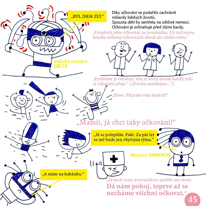 Kniha velmi jednoduše vysvětluje dětem (i rodičům), jak funguje naše imunita, jak viry útočí, a jak se naše vlastní obrana díky očkování rozvíjí a trénuje.