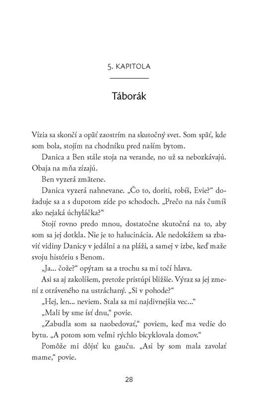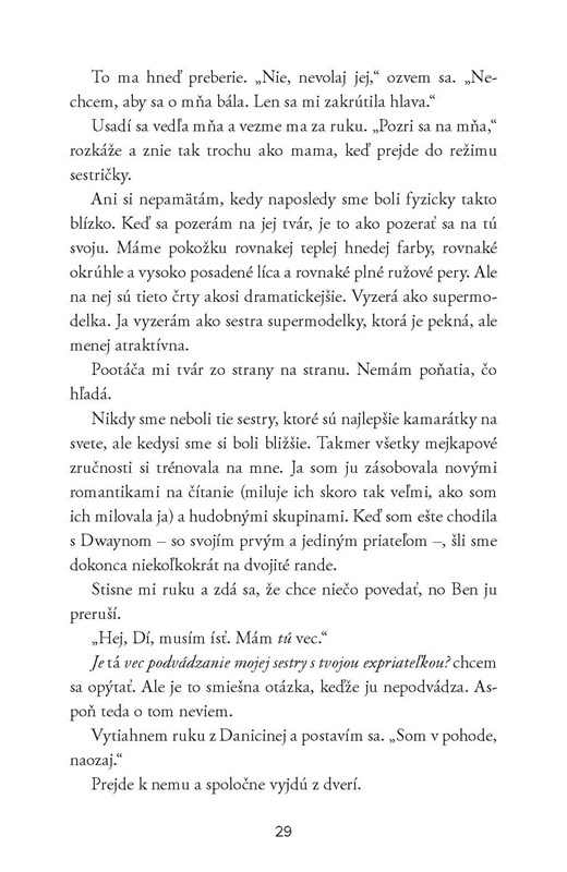 Čakala som, že celý príbeh sa bude točiť okolo nového objavu hlavnej hrdinky, prvého bozku, veľkej drámy tesne pred koncom a srdcervúceho záveru (mimochodom, také knihy milujem!), no Nicola Yoon dokázala, že to vie potiahnuť oveľa hlbšie. Evie je na svoj vek taká vyspelá, taká vnímavá a taká bystrá, ako máloktorá postava tínedžerských kníh. Navonok je vždy nad vecou, veselá a bezstarostná, no vo vnútri ju ťaží boľavý rozvod rodičov, kvôli ktorému prestane úplne veriť na lásku.