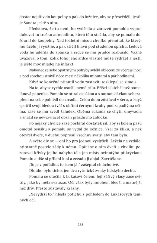 David je ten nejhodnější kluk na světě. Než se napije. Šárka by si nikdy nevzala perník. Než se zamiluje. Lukáš by Šárce nikdy neublížil. Než se sjede. Sandra by se nikdy nemotala Šárce do života. Než se objeví.
