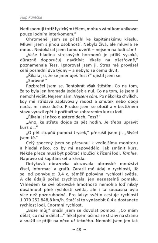 Probudil se ve spánkové komoře na obrovské vesmírné lodi. Nepamatuje si kdo je, kde je, ani jak se sem dostal. Plavidlo je plné zmrazených mrtvých lidí a on jediný je naživu. Při postupném vybavování si své identity se setkává s nejednou překážkou. Jeho jediným společníkem se mu stává umělá inteligence v lodních počítačích. Ochrání spolu s ní svou loď před nebezpečným polem asteroidů a nevítaným hostem? Na pomoc jim sice vyráží nová loď s posádkou, stihne se k nim ale dostat včas?