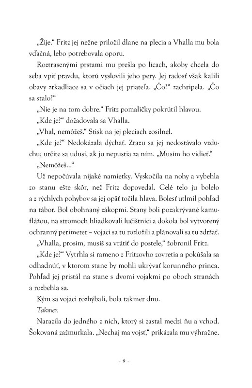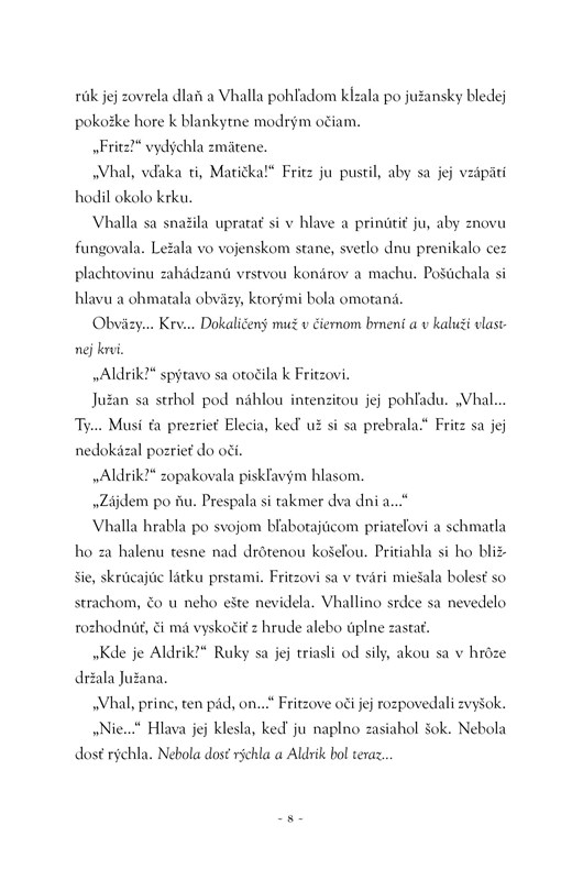 Stratila už rodinu aj priateľov, no o novonájdenú princovu lásku prísť nemieni. Puto, ktoré ich spája, nedokáže pretrhnúť ani smrť, ani nenávisť Aldrikovho otca Imperátora. Vhalla však vie, že na jej ceste k šťastiu stoja mnohé prekážky – jej zotročenie Imperátorom, jej sila vyhrať veľkolepú vojnu za zjednotenie ríše, no aj nebezpečné plamene, ktoré ticho požierajú myšlienky a city jej milého. Vhallu čaká nevyspytateľný boj o záchranu toho najcennejšieho, čo na svojej púti našla – lásky.