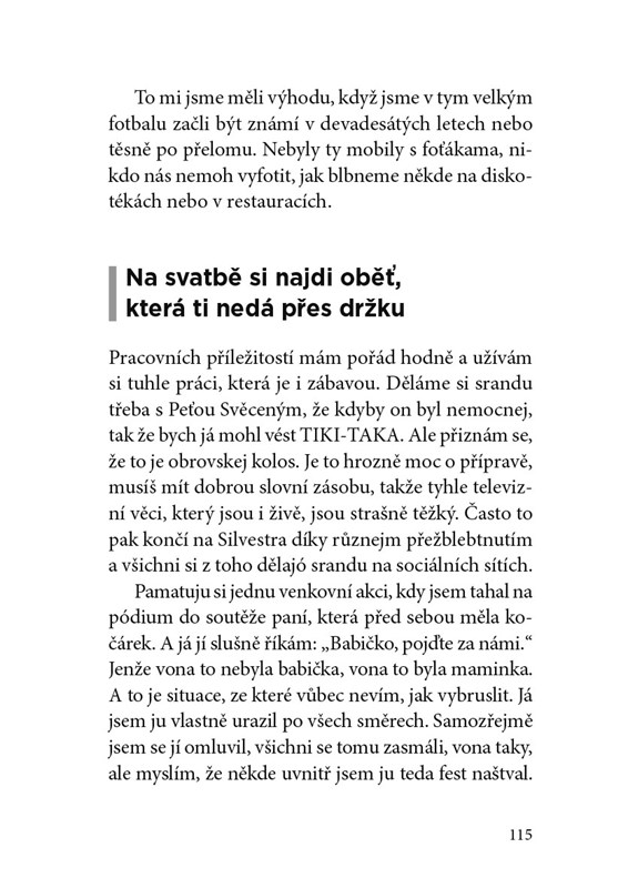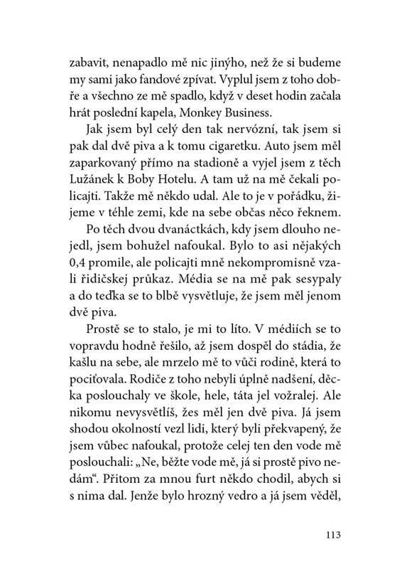 "Já se prostě považuju za obrovsky pozitivního člověka. A všichni ostatní vlastně nevijó, jestli mám třeba zrovna starosti. I tak ale chcu být pořád pozitivní člověk. I v týhle době, kdy jsme prošli covidem, prožíváme válečnej režim, žijeme v sociálních sítích, kde se setkáváme se spoustou nenávisti v komentářích, hejtováním, kamkoliv přindu, všude má někdo nějaký starosti, ať už zdravotní nebo finanční, i tak si chcu pořád držet to pozitivní myšlení a chcu být pořád nositelem té pohody.