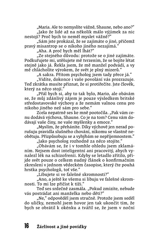 Dva úplně stejní horolezci bojují o krásnou řeckou servírku. Taxikář nachází v šéfově autě náušnici své manželky. Žena letící z New Yorku do Londýna se kvůli manželově nevěře rozhodla spáchat sebevraždu a bez okolků své plány svěřuje podivnému spolucestujícímu.