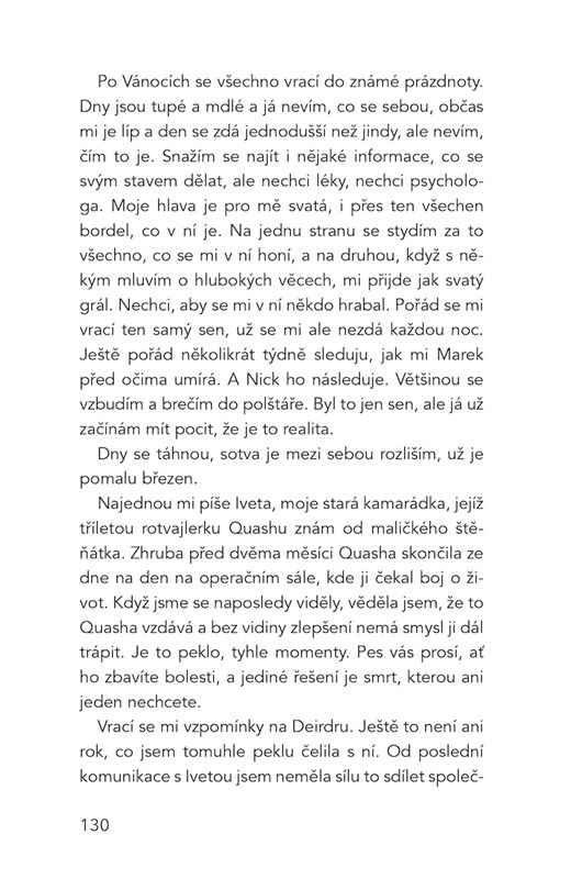 V autobiografické knize plné emocí a zvratů autorka popisuje, jak se to vlastně celé stalo i jak se hrabala nahoru a hledala znovu své štěstí. Čeká na vás spousta myšlenek a postřehů, které po cestě nasbírala. Možná vám otevře nové obzory a pomůže pochopit nejen svět kolem, ale i sebe sama.