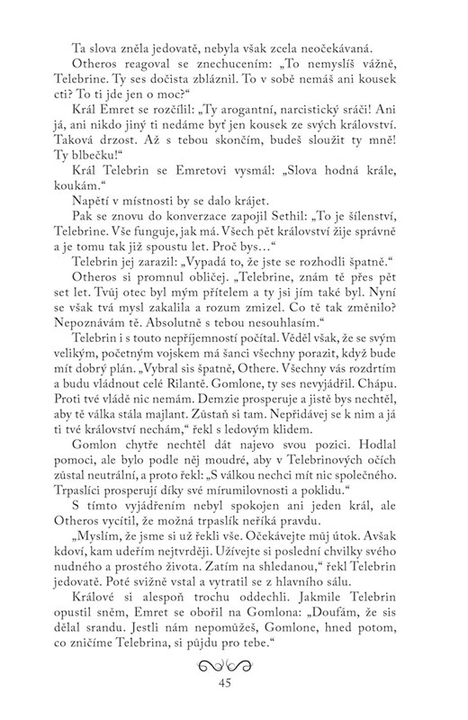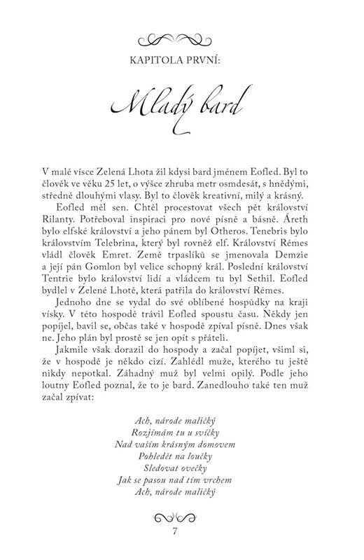 Bard, který nikde nebyl, nemá o čem zpívat. To si aspoň pětadvacetiletý Eofled myslí, a tak se vypraví na cestu. Má v plánu navštívit všech pět království Rilanty. Jeho dobrodružství začíná radostně, všechno mu téměř dokonale vychází. V Rémesu si v jedné hospůdce zahraje své písně, a v Árethu si dokonce zazpívá na svatbě prince Rila. Když ale dojede do království Tenebris, zjistí, že to v něm pěkně vře. Nenávistný král vedený tajemnou postavou právě rozdmýchává válku. Po střetu se zlými elfy je Eofled pověřen varovat trpaslíky. Tím pro něj začíná neplánovaná a důležitá mise, na které ho čeká spousta nástrah a nebezpečí.