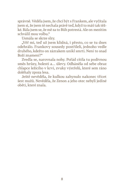 Katarzyně je něco přes čtyřicet a za celý život nevytáhla paty z rodného Polska. Teď však má pro svou firmu otevřít novou pobočku v Ostravě. Od studenta Martina, kterého zaměstná jako tlumočníka, se dozví o tragické historii blízké vesnice Životice: v srpnu 1944 zde nacisté v odvetě za partyzánský útok na příslušníky gestapa zastřelili během jednoho nedělního rána třicet šest mužů. Katarzyna dojde k názoru, že dávný nacistický masakr může mít spojitost s její devadesátiletou tchyní. Na vlastní pěst rozjede pátrání – netuší ale, že pro vztahy v její rodině to může mít osudové následky.