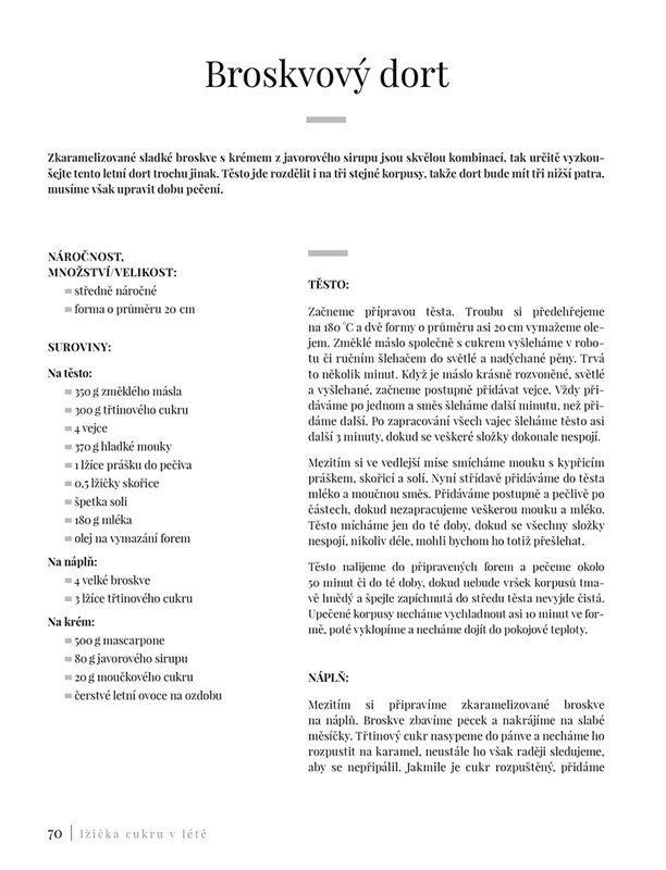 Různým ročním obdobím sluší různé sladké recepty. Ví to i známá food blogerka Markéta Marešová alias Lžička Cukru. Jak nechat rozkvést svěží jarní chutě, lahodné letní laskominy, příjemné podzimní tóny i pokrmy, které zahřejou v té nejmrazivější zimě? Stylová kuchařka plná nádherných fotografií vás okouzlí řadou skvělých jídel – od nektarinkového koláče přes dýňové lívance až po kořeněnou karamelovou roládu. Máte před sebou vážně sladký rok!