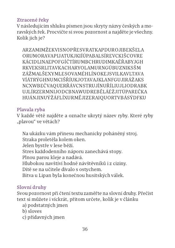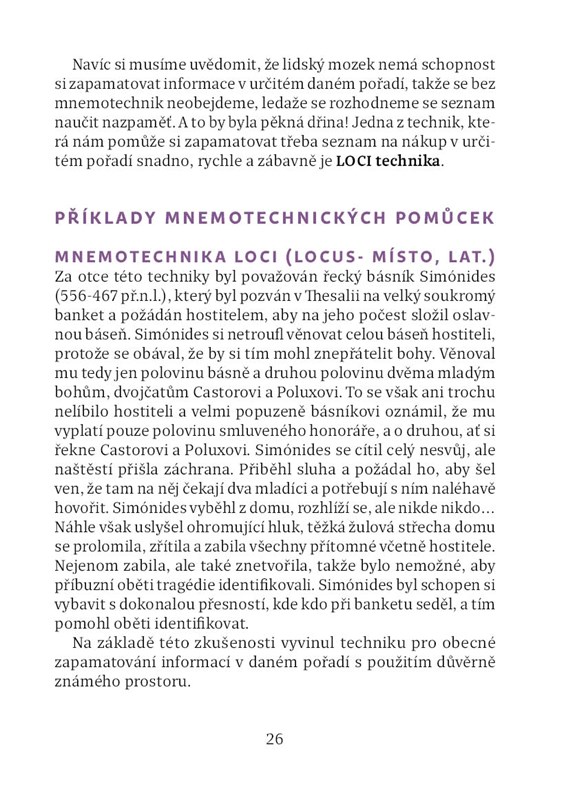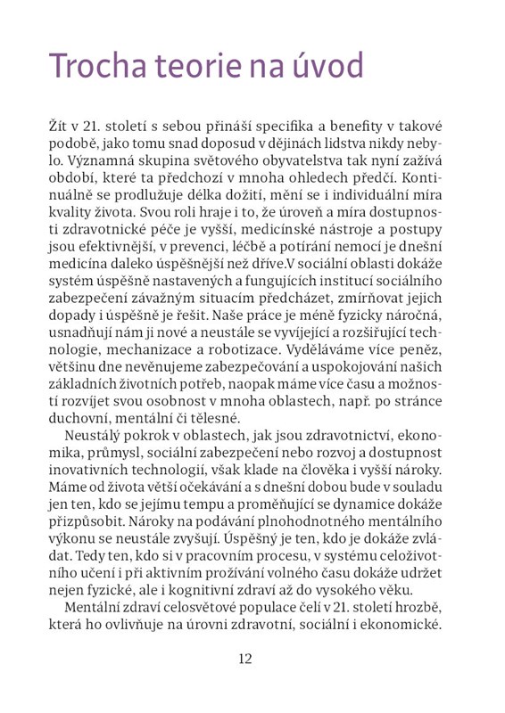 Publikace "Jednoduché a zdravé cvičení mozku a paměti pro seniory“ je unikátním dílem kolektivu autorů – zejména členů České společnosti pro trénování paměti a mozkový jogging. Dozvíte se, co je to kognitivní trénink, jak probíhá v praxi či jakým způsobem si jeho prostřednictvím můžete zlepšit svůj mentální výkon. Seznámíte se s podstatou několika mnemotechnických pomůcek, a především si na konkrétních příkladech procvičíte všechny složky myšlení a paměti. Zlepšete si s námi koncentraci, slovní obratnost, sémantickou paměť i asociativní a kreativní myšlení:)
