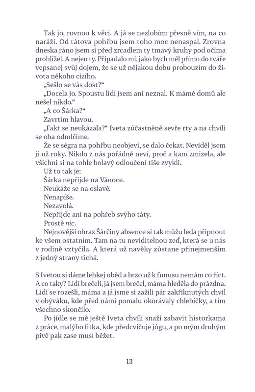 Markovým světem se po náhlé smrti otce rozprostře nicota. Podivný vzkaz jako ze záhrobí ovšem mladého malíře vytrhne z letargie: vypadá to, že pouze jeho sestra Šárka, kterou už roky neviděl, zná pravé důvody rodinného neštěstí. Najít ji přesto nebude snadné. Sama se ukrývá v hlubokých lesích, kde ji uvěznila vlastní minulost. Ta, kterou jejich otec vidí docela jinak než všichni ostatní.