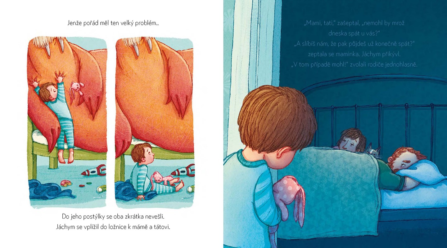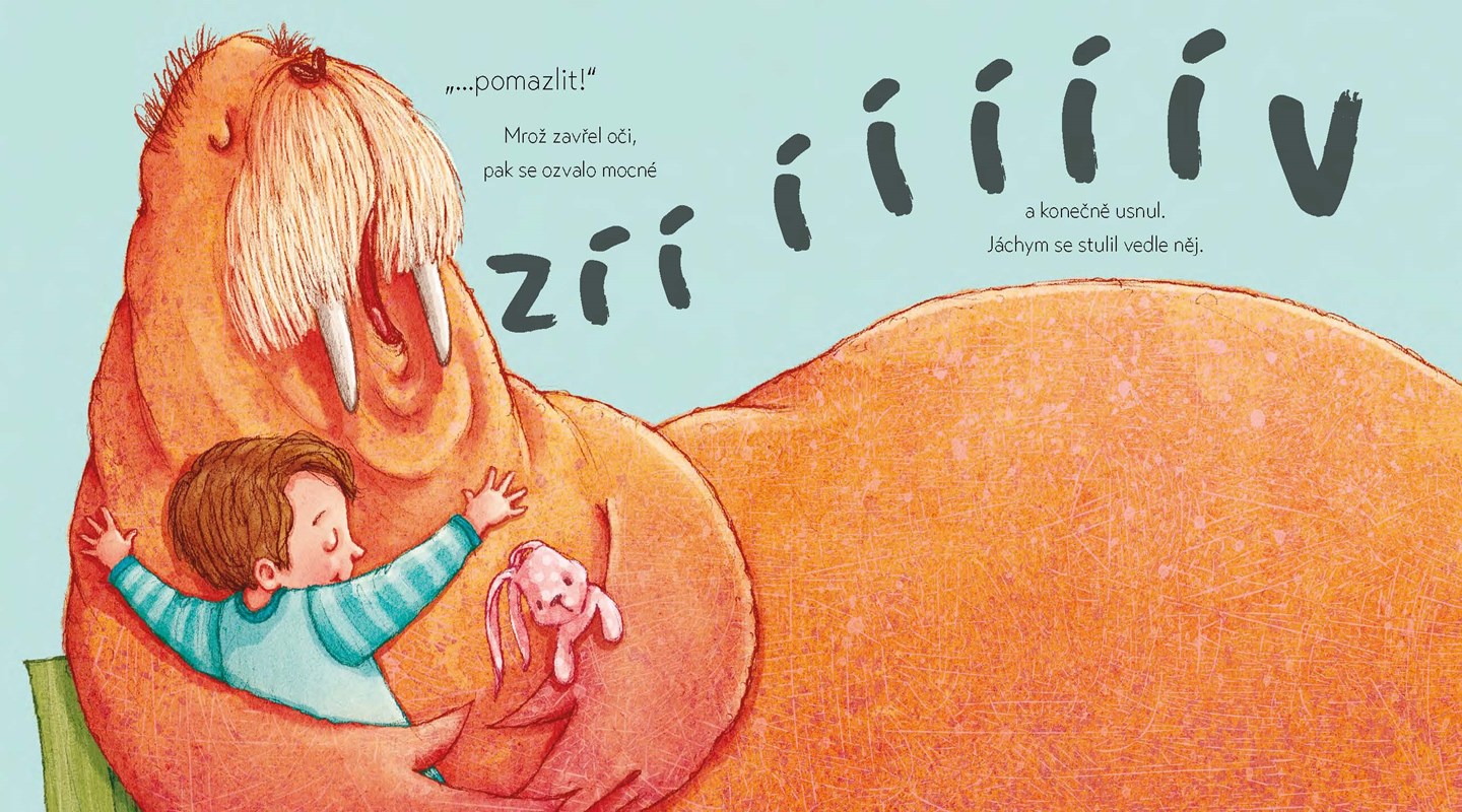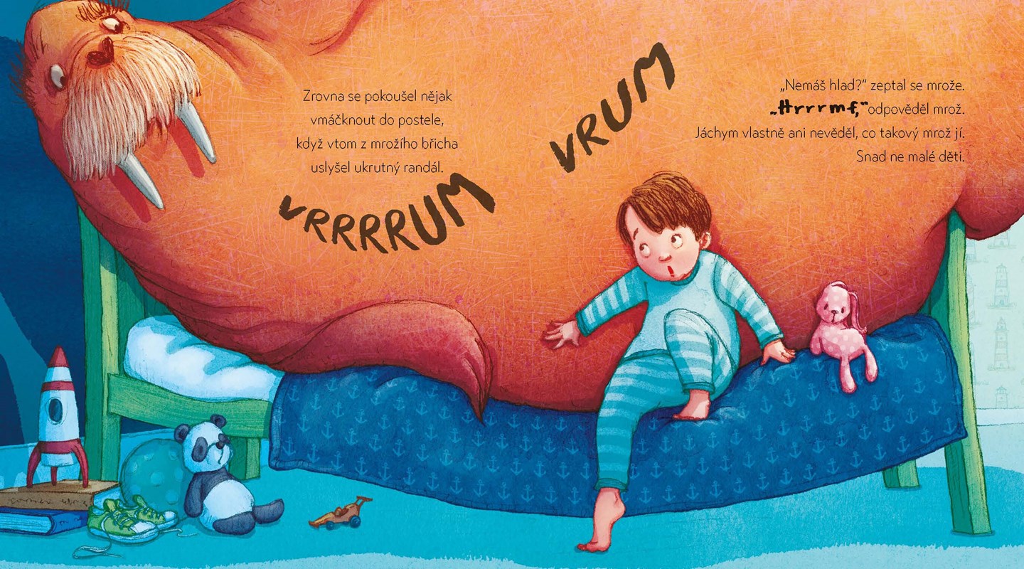 Jáchym dostal parádní novou postel, ale nemůže si do ní jít lehnout, protože... v ní už leží obrovský mrož! A chudák ne a ne zabrat, ačkoli se Jáchym snaží ze všech sil, aby panu mrožovi udělal pohodlí. Rodiče už ztrácejí trpělivost, protože je dávno po večerce. Takže když Jáchym přijde s tím, jestli by si mrože nevzali k sobě do ložnice a že on si pak půjde opravdu už lehnout, souhlasí. Ale možná, že si Jáchym tak úplně nevymýšlel...
