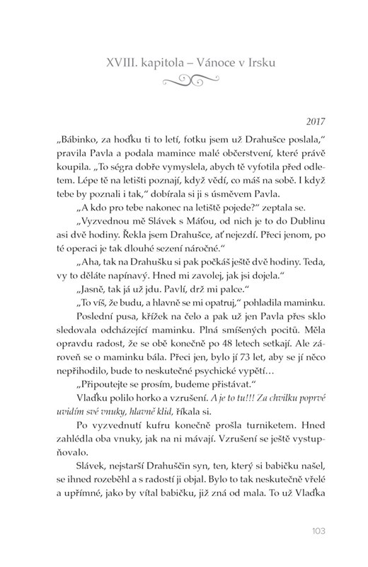 Kniha psaná rukou sestry znovunalezené Drahušky připomíná, že i zdánlivě objevená štěstěna je vrtkavá. Příběh v knižní podobě je totiž jejím posledním přáním, které vyslovila, než ve své loďce odplula za pomyslný horizont osudu…