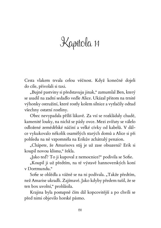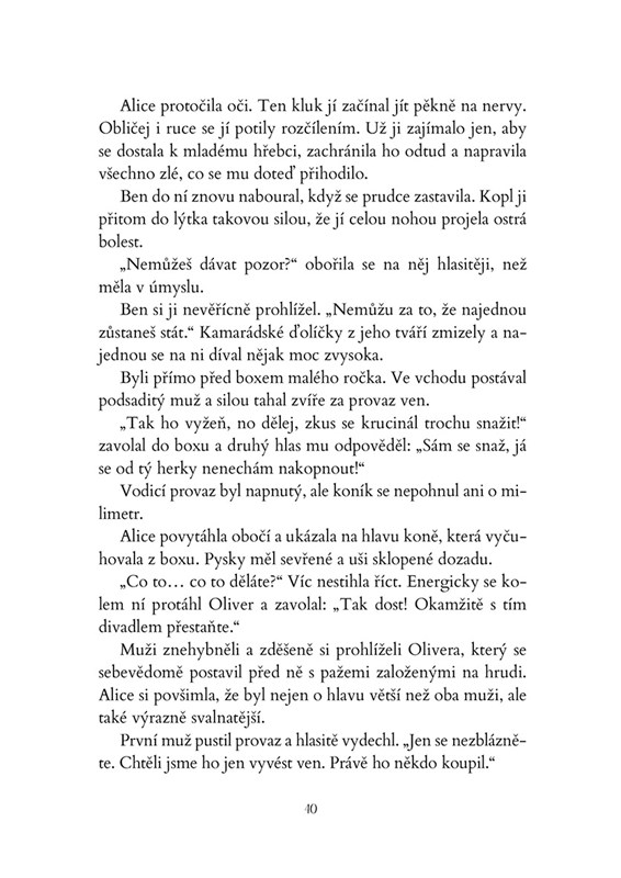 Alice vydraží na aukci zanedbaného arabského ročka – má totiž pocit, že ji s koněm pojí jakási neviditelná síla. Alicin biologický otec, u něhož tráví léto na jezdeckém statku, ji v rámci svých možností podpoří. Alice však brzy zjistí, že temné tajemství, které s sebou hřebec přináší, znamená ohrožení pro ni i její nové přátele. Naštěstí je na její straně Ben. Jenže tenhle čeledín dokáže Alici udělat v hlavě i v srdci pěkný zmatek.