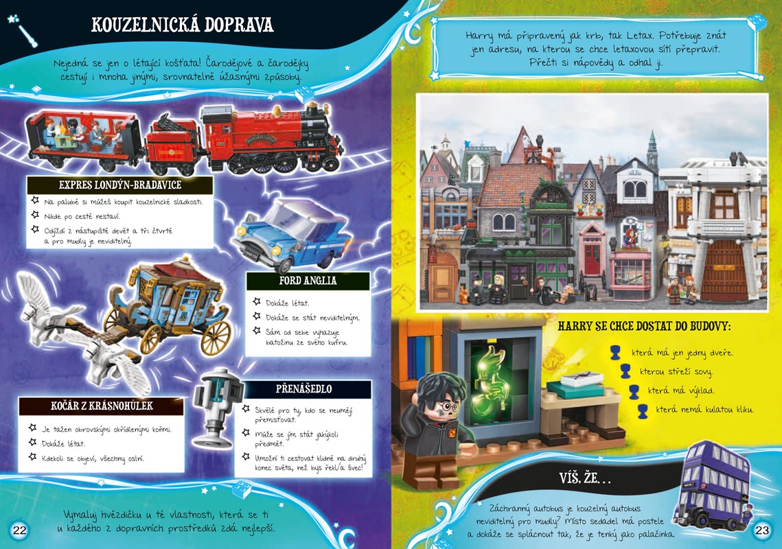 Otevři tuto pozoruhodnou knihu ze světa LEGO® Harry Potter™ a najdi v ní spoustu aktivit i zajímavostí o výjimečných kouzelných věcech, dopravních prostředcích či bytostech, které patří do Kouzelnického světa™. A navíc díky ní můžeš ohromit své kamarády vlastní sadou kouzelných LEGO předmětů.