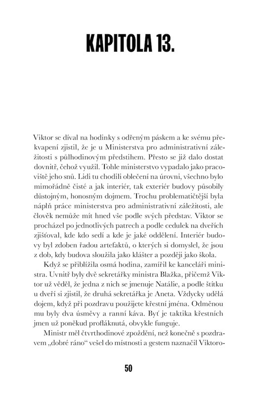 Novela z prostředí politické arény o politickém poradci a spin doctorovi Viktoru Langovi. Na pozadí dynamického příběhu jsou vysvětlovány principy moci, na které kniha nabízí jedinečný pohled.