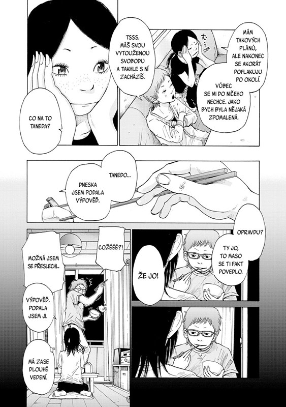 Ani rok po nástupu do prvního zaměstnání si Meiko nezvykla na novou roli produktivního člena společnosti. Den za dnem tráví ubíjející úředničinou obklopena lezci po korporátním žebříku, povrchními kolegyněmi a puntičkářškými nadřízenými.Znamená snad dospělost zadusit v sobě i poslední uhlíky vášně a stát se chladným a lhostejným kolečkem v dobře naolejované mašinerii japonské společnosti? Takovou otázku si kladou i její přátelé z hudebníko klubu, a rozhnodnou se proto pro radikální krok: vrhnout všechnu zbývající energii do obnovení studentské kapely a naposledy se pokusit prorazit s vlastní tvorbou.