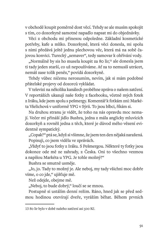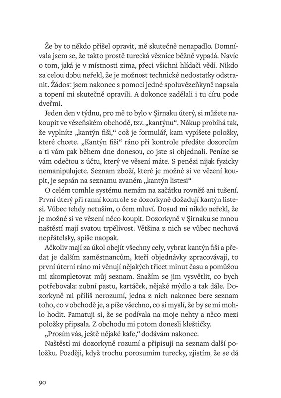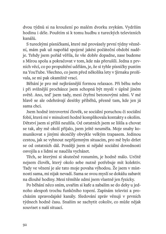 Markéta Všelichová strávila v tureckém vězení tři a půl roku. Ve svých vzpomínkách živě popisuje vše, co jejímu zatčení předcházelo: humanitární činnost, výpravy na Blízký Východ i pomoc Kurdům. Stejně autenticky líčí drsnou realitu tureckých žalářů, vztahy se spoluvězenkyněmi a mrazivé příhody zpoza mříží. Velmi osobní vyprávění odhaluje osud mladé ženy, která se ocitla v nepředstavitelné situaci, a přesto se nikdy nevzdala svých snů o pomoci druhým.