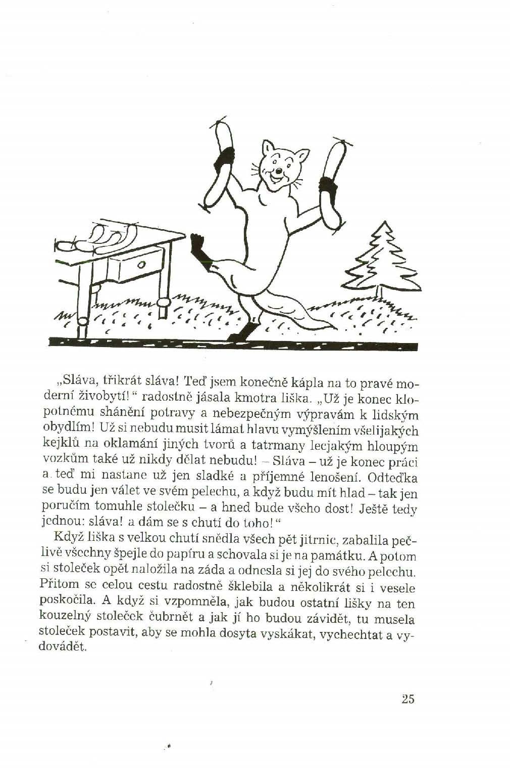 V hájovně U Pěti buků se nevedlo bystrému liščeti špatně. Od lidí se naučilo mluvit, číst i psát. Ale když vyrostlo, chtělo do světa. Tak liška utekla a zabydlela se v blízkém lese. A protože byla nejen chytrá, ale i vynalézavá a odvážná, pustila se do neuvěřitelných dobrodružství. S uzenářem Špejlíkem třeba uzavřela smělou sázku o výtečnou šunku, kterou samozřejmě vyhrála, a ještě přitom stačila provést pěkné kousky v celém městečku. Jelikož však liška byla poctivá a spravedlivá, získala si přízeň i samotného knížete pána. A co bylo dál? To už se dozvíte ve veselém vyprávění Josefa Lady, doprovázeném jeho báječnými obrázky.