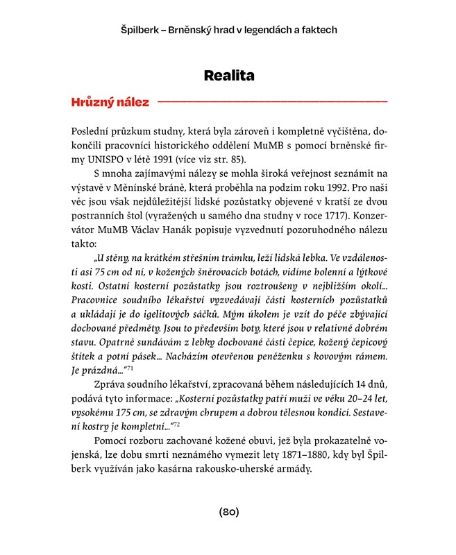 Vrátíte se nejen do rytířských dob Přemyslovců, ale vydáte se také do heroických časů švédského obléhání i do pochmurných let, kdy se z hradu stal žalář „sprostých“ zločinců rakouské monarchie či vězení německého gestapa. Ponoříte se rovněž na dno neuvěřitelně hluboké hradní studny a sestoupíte do podzemních kasemat, kde navštívíte údajnou hladomornu, ukrutnou mučírnu, popravčí sekyrárnu i kobku pro doživotně odsouzené, abyste nakonec odhalili pohnuté osudy zdejších vězňů.