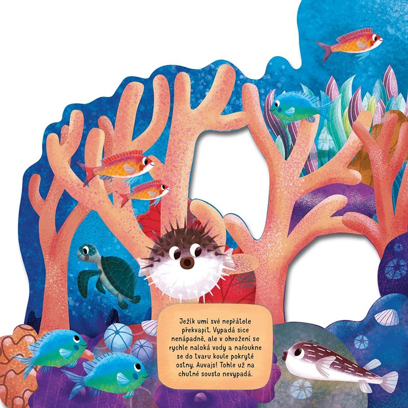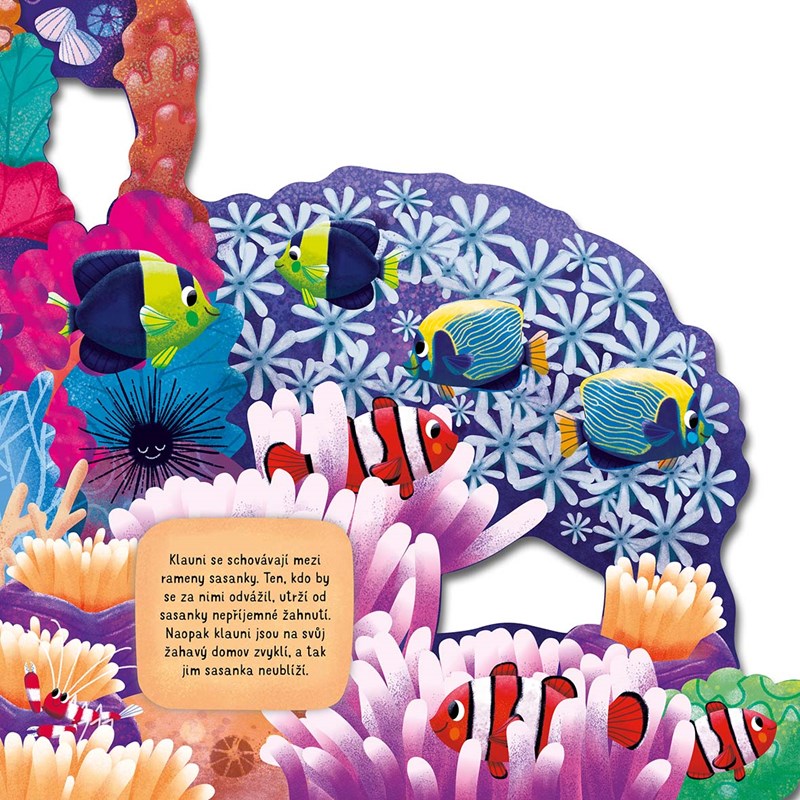 Barevné rybky, maličcí mořští koníci i šibalské chobotnice – ti všichni přebývají na korálových útesech. V teplých tropických vodách mají dostatek jídla a skuliny mezi korály jim nabízejí bezpečné úkryty. Ponoř se pod hladinu moře a vydej se prozkoumávat skrytá zákoutí korálového útesu. Mezerami mezi korály uvidíš, kam se který obyvatel útesu schoval.