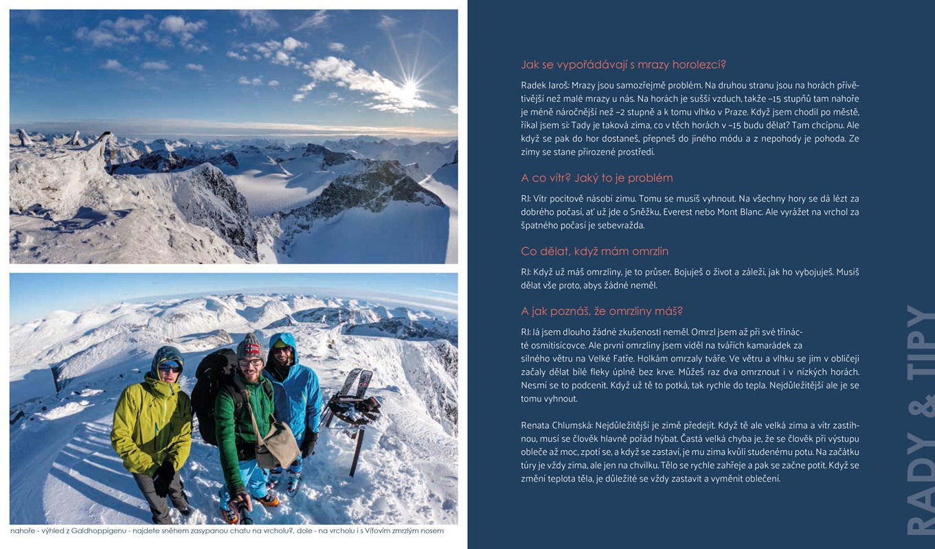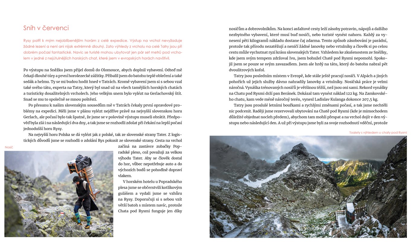 Jarda rozhodně není žádný horolezecký profesionál. Naopak udělal v horách několik přešlapů a s každým vrcholem se naučil něco nového. Chybám se čtenář zasměje a zároveň se díky zajímavým rozhovorům se slavnými českými horolezci, které prokládají knihu (Radek Jaroš, Adam Ondra, Renata Chlumská) poučí.