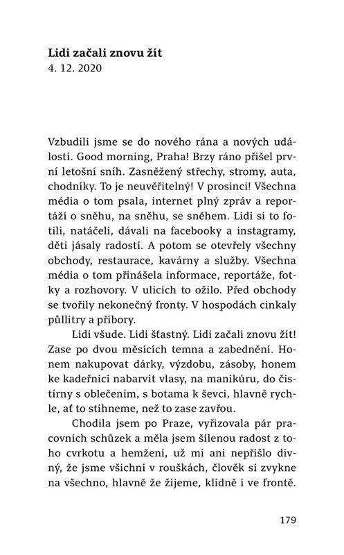 Známá zpěvačka Bára Basiková v deníkových zápiscích zachycuje své dojmy z období, kdy její kariéru přerušila pandemie. Kniha je rozšířenou verzí jejího internetového blogu plného emocí a dojmů ze světa, který se v jednu chvíli nečekaně zastavil. Autorka líčí dny a měsíce, během nichž se stejně jako miliony dalších lidí musela vyrovnat s novými poměry. Zpěvačka píše, jak musela zavládnout život v karanténě a postupně se pomalými kroky vrátila do světa, který se sice dostal do původních kolejí, ale pro mnohé už nikdy nebude jako dřív.