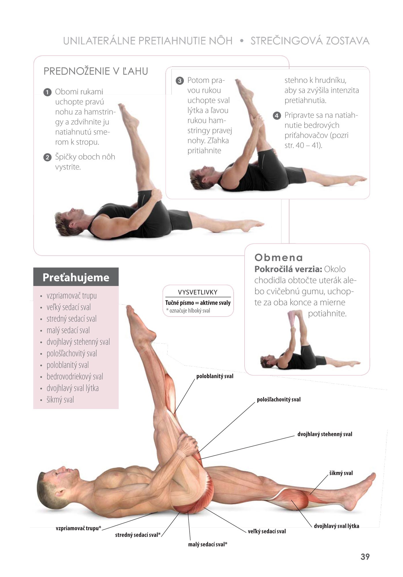 Autor vás prevedie strečingovou zostavou zameranou na všetky hlavné svalové skupiny od hlavy až po päty. Nájdete tu tiež rýchly strečingový program ideálny pre tých, ktorí sa chcú cítiť a vyzerať výborne, ale nemajú vždy čas stihnúť celú zostavu. Kniha obsahuje aj kapitoly venované cvikom pre tehotné, cvičeniu s partnerom alebo cvikom do kancelárie – cvičiť možno v rôznych situáciách. Novinkou je cvičenie na penovom valci, ktoré umožňuje tzv. myofasciálnu masáž na odstránenie stuhnutosti a bolesti svalov. Každý cvik je jasne popísaný krok za krokom a doplnený farebnými fotografiami a podrobnými anatomickými ilustráciami znázorňujúcimi cieľové svalové skupiny. Spolu s knihou dostanete aj farebný plagát s jednotlivými cvikmi rýchleho strečingového programu.