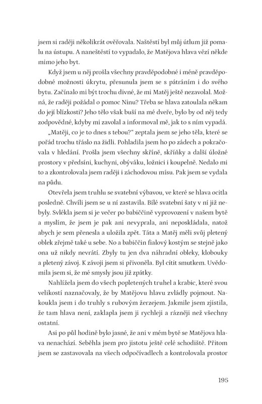 Čerstvě dospělá Rozárka žije ve světě, kde se věci dějí doslova. Tak třeba její kamarád Matěj občas ztrácí hlavu a musí šátrat a šátrat, aby ji našel. Babička má všechno popletené, včetně záchodového prkénka, na které použila károvaný vzor. Rozárčin táta slyší jenom to, co chce. Takže skoro nic. A kolegyně Vida po ní tu a tam rozzuřeně hodí pohled s horskou krajinou.