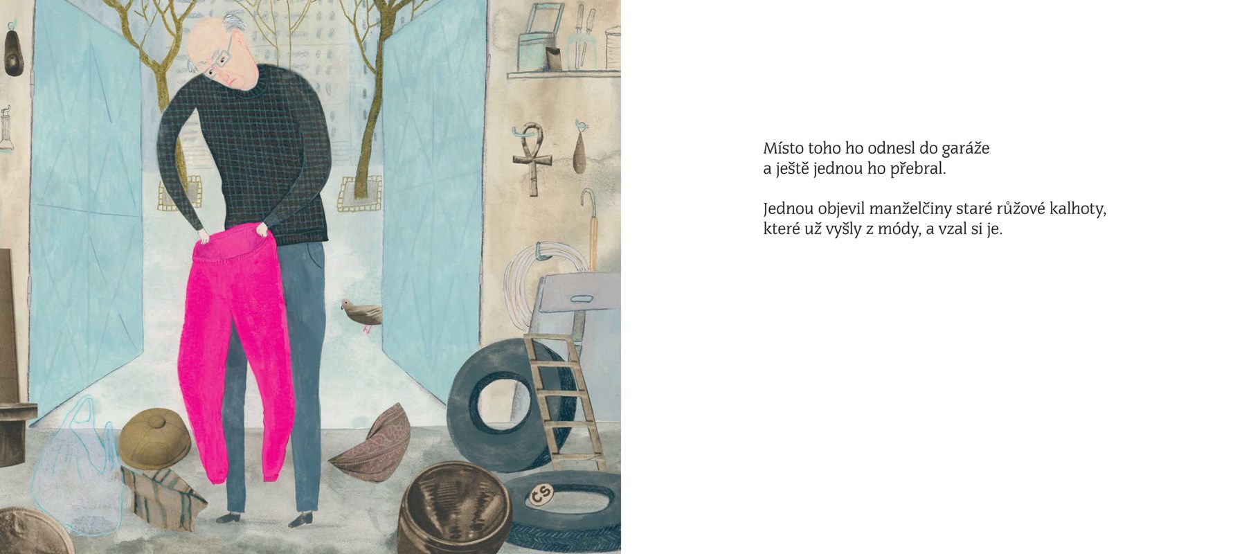 Dědeček z našeho vyprávění není jako ostatní prarodiče – nosí totiž růžové kalhoty! A vůbec se někdy chová legračně a lidé si o něm povídají, že je podivín. Někteří si dokonce myslí, že je zlý. Jak ale jeho vnouček roste, pomalu začíná chápat, proč dědeček provádí tolik divných věcí a nechce se vzdát těch směšných kalhot. V příběhu s přesahem a poselstvím děti zjistí, že nenápadné hrdinství může být působivější než tisíce velkých gest.