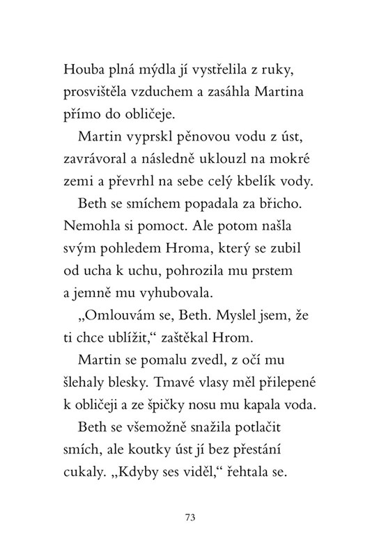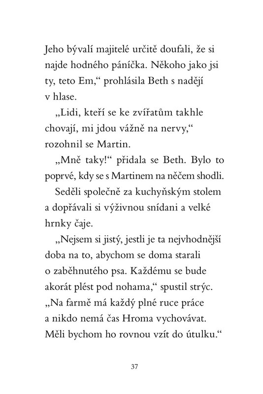 Beth si letošní prázdniny vůbec neužívá. Tráví je na farmě u své tety a strýčka, společně se svým protivným bratrancem. Ten ji neustále škádlí a vymýšlí různé léčky. Všechno se změní, když se objeví Hrom, černobílé štěňátko se zářivě modrýma očima. Spolu s ním totiž zažije úžasné dobrodružství!