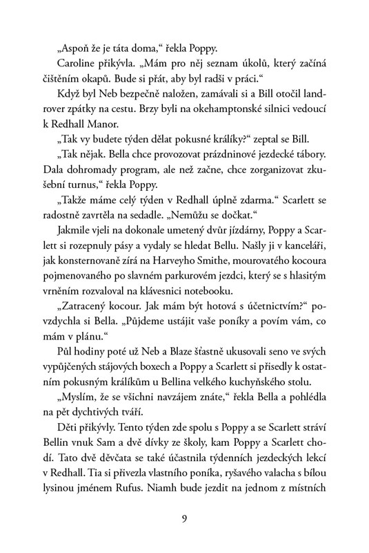 Když vyjížďka na ponících pořádaná jejich jízdárnou skončí tragédií, ocitnou se Poppy a Scarlett rovnýma nohama uprostřed pátrání. Začnou se totiž dít divné věci a nevypadá to, že jde o náhody. Kdo má na stáje vztek a chce je zničit? Podezření padne na konkurenční jezdeckou školu Claydon Manor, je ale jejich bezohledná manažerka opravdu na vině?
