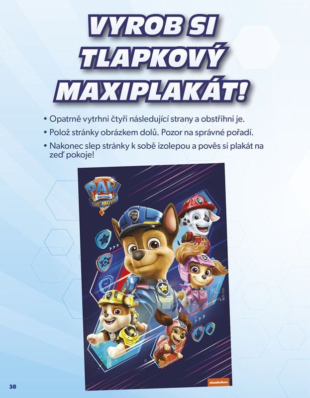 Pomozte statečným štěňatům ochránit Adventure City a užijte si spoustu legrace s úkoly na motivy filmového dobrodružství Tlapkové patroly. Můžete luštit, vybarvovat a vystřihovat nebo si vyrobit skvělý plakát s oblíbenými hrdiny. Odvážné tlapky už se ženou, aby zachránily každou situaci!