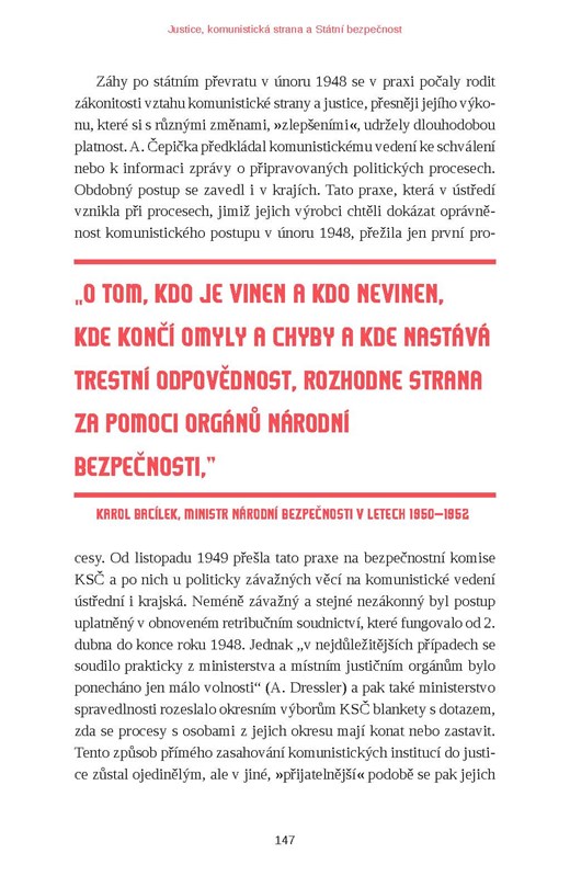 „O tom, kdo je vinen a kdo nevinen, kde končí omyly a chyby a kde nastává trestní odpovědnost, rozhodne strana za pomoci orgánů národní bezpečnosti,“ Karol Bacílek, ministr národní bezpečnosti v letech 1950–1952