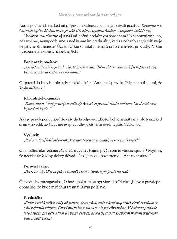 Príručka s úvodom od Adele Faber, spoluautorky celosvetového mega-bestselleru Ako hovoriť, aby nás deti počúvali – Ako počúvať, aby nám deti dôverovali, by mala byť povinnou výbavou každého, kto žije alebo pracuje s malými deťmi.