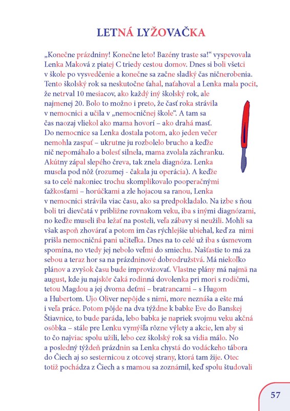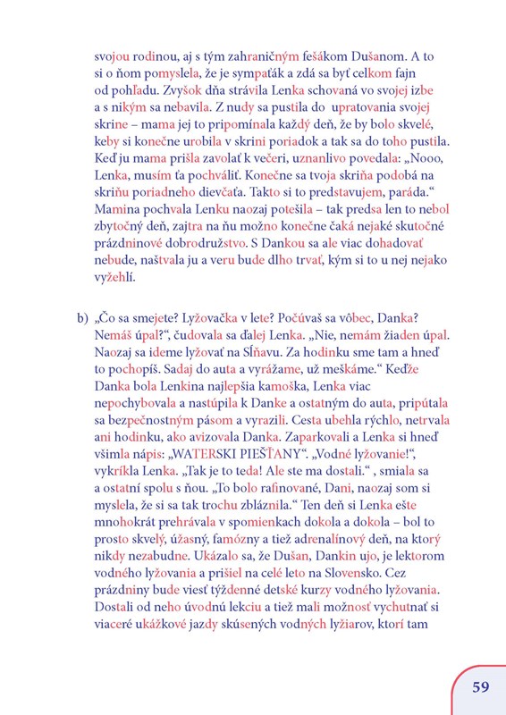 Texty v knižke sú vytlačené väčšími písmenami a dvojfarebne, rozdelené po slabikách pre jednoduchšie čítanie aj pre tých, ktorí majú ešte stále problém tiež s plynulosťou čítania.