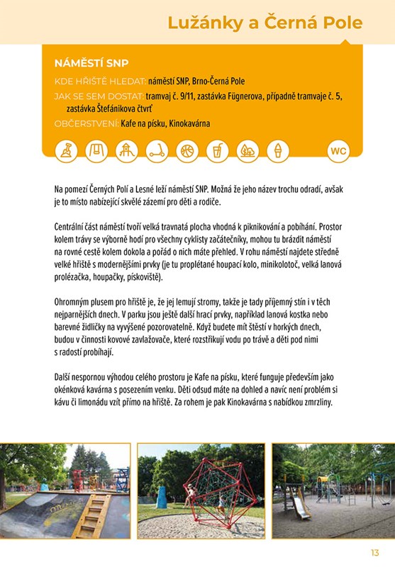 - tipy na 37 perfektních hřišť v celkem 17 oblastech Brna;