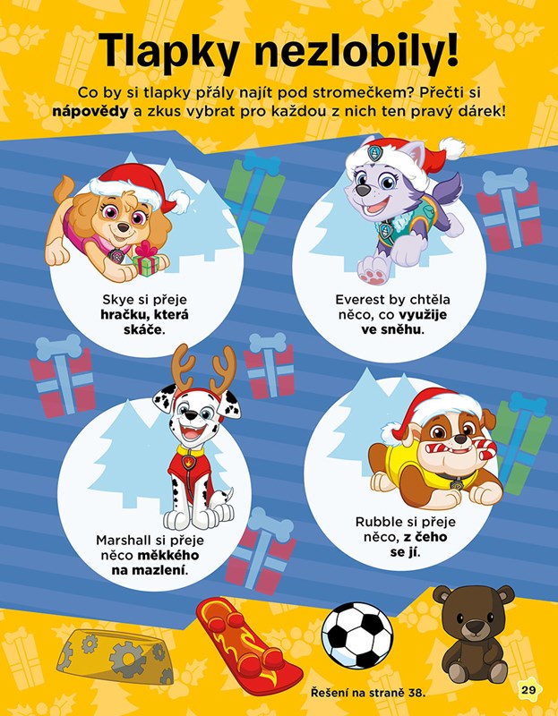 Vyrob si s Everest parádní cedulky na dárky, pomoz Rockymu ozdobit punčochu nebo se pusť do pečení pohádkového cukroví s Chasem a Skye. Užij si spoustu zábavy s hravými nápady a úkoly a oslav veselé tlapkové Vánoce!