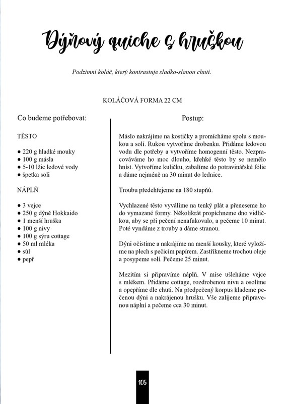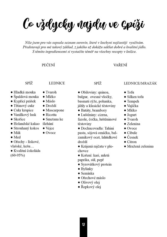 Mladá kuchařka ve své knize ukazuje, že vaření a pečení není žádná nuda. Ve čtyřech kapitolách najdete spoustu zdravých receptů na bezmasé pokrmy, ze kterých si snadno připravíte snídani, oběd či večeři. Na své si přijdou milovníci slaného i sladkého. Jídla nejsou nijak složitá na přípravu, naopak, některé z nich vám zaberou jen chvilku a k jejich přípravě budete potřebovat jen běžně dostupné suroviny. Inspiraci v knize můžete hledat celý rok, obsahuje totiž řadu sezonních dobrot. Všechny recepty jsou vegetariánské. Sama autorka maso z jídelníčku vyřadila a chce ukázat, že i bez něj lze udělat skvělé a vyvážené pokrmy, které vám budou chutnat.