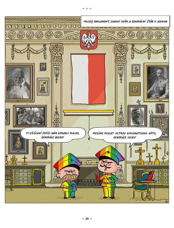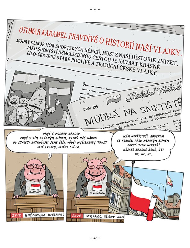 Všechno začalo jednou 30 let starou křivdou. Ta vznikla při dělení Československa. A na Slovensku si na ni vzpomněli. Co se stane, když si politici hledí jen svých funkcí a na nic jiného neberou ohledy? Jak se vše může zvrtnout, pokud se zamotáme do pavučin lží, fake news a dezinformačních kampaní? Proč politikům nesmíme věřit ani pozdrav? Totálně ustřelená komiksová férie, u níž její autoři doufají, že se nikdy nestane.