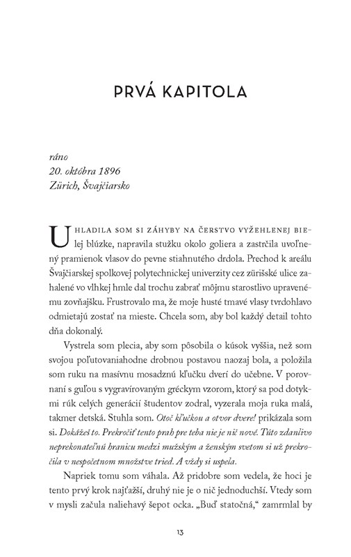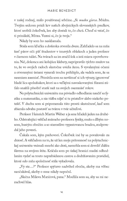 Mileva „Mitza“ Marićová bola odmalička iná ako ostatné dievčatá. Kým väčšina z nich videla svoju budúcnosť v domácnosti a pri deťoch, ona študovala fyziku na elitnej univerzite v Zürichu, kde napriek mnohým predsudkom bojovala o úspech v odbore, v ktorom dominovali muži. Matematika pre ňu bola vždy jednoduchšia cesta ako manželstvo.