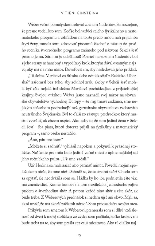 Lenže keď sa o ňu začal zaujímať spolužiak Albert Einstein, jej svet sa otočil hore nohami. Stali sa z nich priatelia, partneri vo vede a neskôr aj rodičia a manželia.