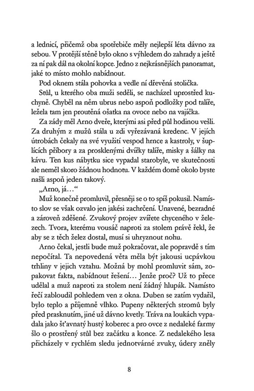 Arnošt Milota řečený Arno, kdysi detektiv z oddělení vražd, si už několik měsíců užívá penzi v rodné vesnici. Uprostřed jedné víkendové noci však dojde k vraždě, která jindy poklidnou obec naprosto šokuje – smrt jednoho z místních totiž vypadá jako vystřižená z divokých devadesátých let. Arno pomáhá svým bývalým kolegům ve vyšetřování, brzy se ale sám ocitne ve smrtelném nebezpečí. Podaří se mu případ vyřešit dřív, než někdo z místních vezme spravedlnost do vlastních rukou a dojde ke katastrofě?