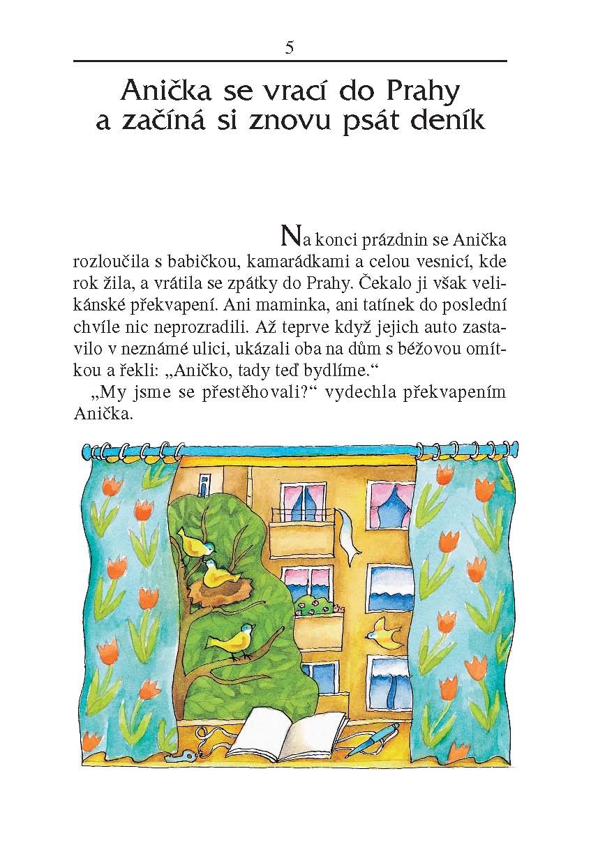 Na konci prázdnin se Anička s rodiči přestěhovala, do třetí třídy začne chodit v nové škole. Loni bydlela u babičky v malebné vesničce, a tak je to pro Aničku velká změna. A znovu má obavy – jaká bude třída, najde si kamarádku? Co všechno ji ve městě čeká?