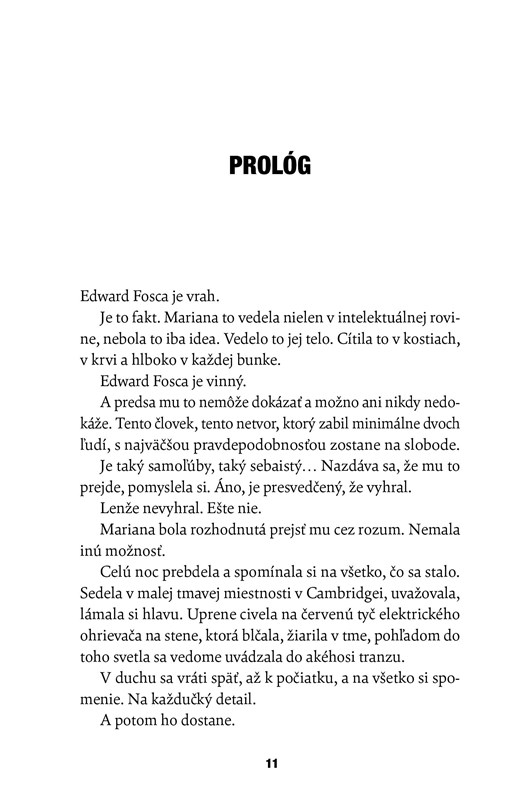 Edward Fosca je vrah. TĂ˝m si je Mariana istá. No zdá sa, Ĺľe je nedotknuteÄľnĂ˝. PrĂĹĄaĹľlivĂ˝ a charizmatickĂ˝ profesor grĂ©ckej tragĂ©die na Cambridgeskej univerzite je totiĹľ obľúbenĂ˝ medzi kolegami aj študentmi – a najmä medzi ÄŤlenkami tajnej študentskej spoloÄŤnosti známej ako Panny.